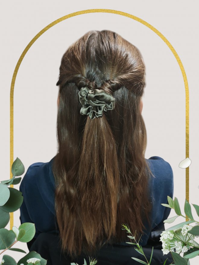 💡 Tip: Vyskúšaj rôzne kombinácie – napríklad polovičný cop s vrkočmi alebo drdol doplnený hodvábnou gumičkou – a vytvor účes na každý deň aj na oslavu.