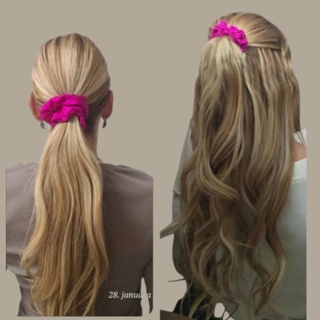 Klasický cop – ideálny na každodenné nosenie. Vlasy držia celý deň a pri rozpustení sú hladké.